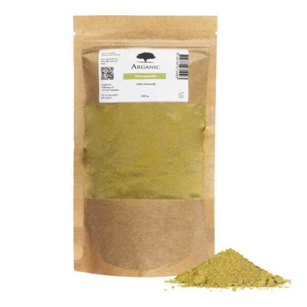 Henna poeder is groen en ruikt neutraal. Sommige aanbieders voegen chemische stoffen aan Henna poeder toe die ernstige allergische reacties kunnen veroorzaken. We hebben er echter bewust voor gekozen om niets toe te voegen aan ons Henna poeder.