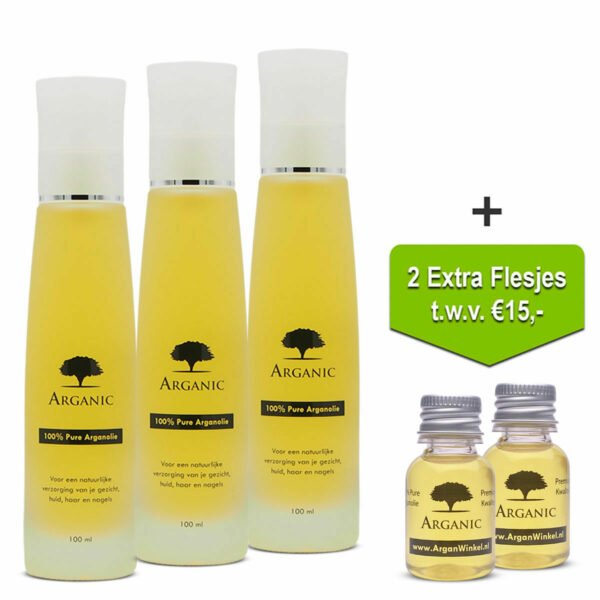 Voordeelbundel 3 Glazen Flessen Pure Arganolie 100ml